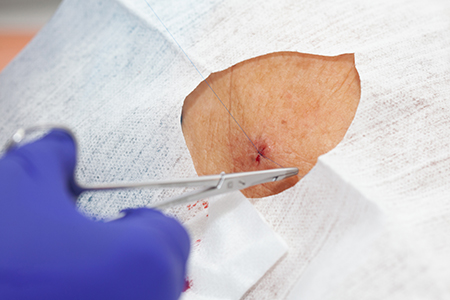 Certain tumors and lesions should be removed completely for examination under a microscope. Excisional biopsies involve cutting away all of a visible the growth, as well as a margin of healthy tissue surrounding the lesion. The affected tissue itself, as well as the nearby skin cells, will be examined for signs of cancer and other skin problems.